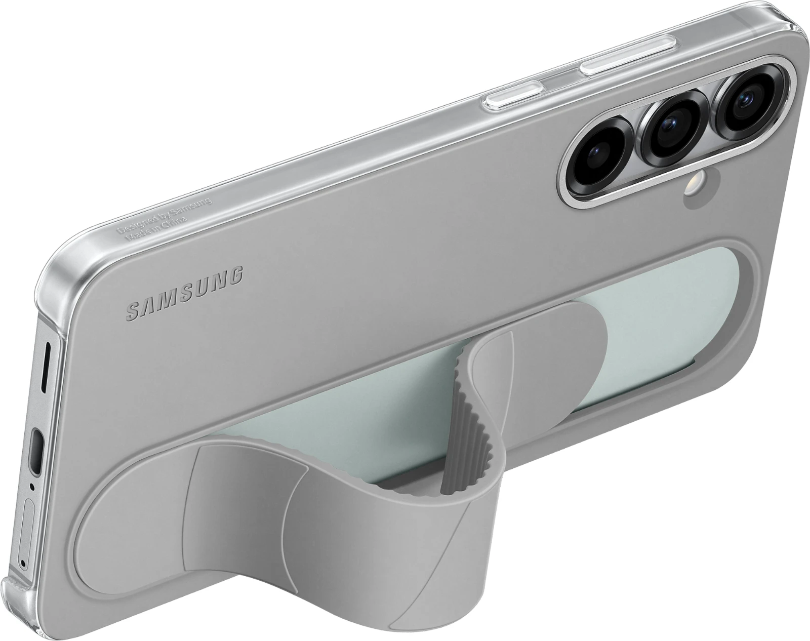 Mit dem Standing Grip Case liegt dein Galaxy S25 | S25+ | S25 Ultra komfortabel und durch das Band zudem sicher in der Hand. Willst du bequem Videos oder Fotos betrachten, kannst du das Band herunterdrücken bis es fixiert ist und so dein Galaxy Smartphone aufstellen und die Inhalte unbeschwert genießen. Das Material überzeugt mit einer weichen Textur, die sich großartig anfühlt. Das Standing Grip Case sieht nicht nur stylisch aus, sondern bietet auch Schutz vor Kratzern und bei Stößen – sowohl für