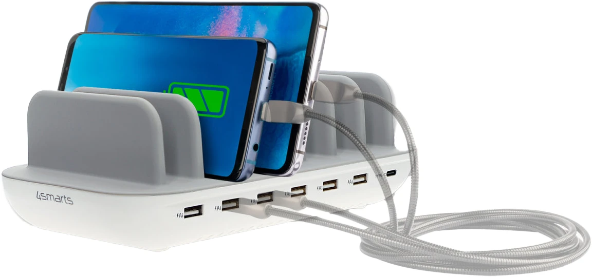 4Smarts Ladestation Team 100W 5C/1A inkl. 6 Kabel Silber